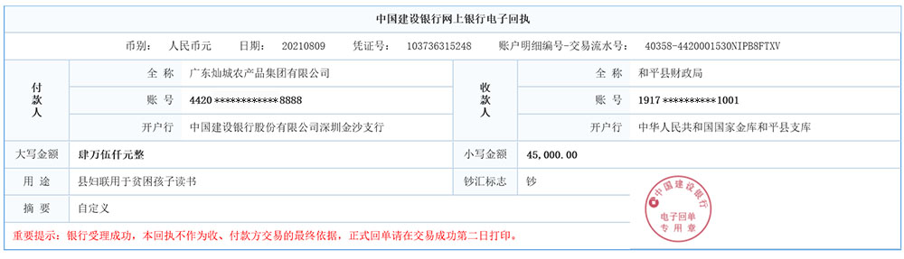 燦城集團愛心捐贈流水截圖部分展示